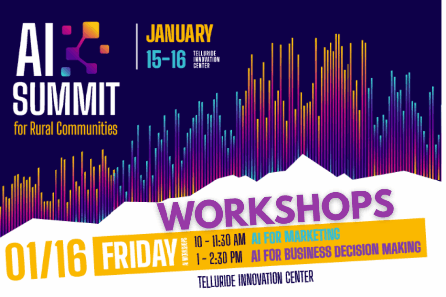 Date: 01/16/2026 | Perfect for entrepreneurs and small business owners, Telluride Venture Network hosts workshops, AI for Marketing, and AI for Business-Decision Making. Walk away